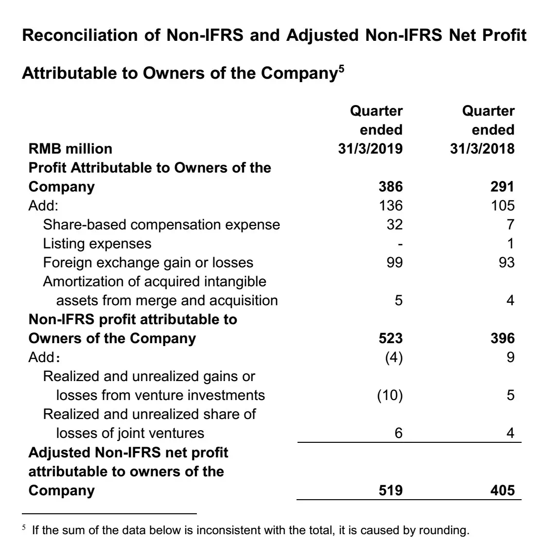 Ø First-quarter 2019 non-IFRS net profit attributable to owners of the Company increased 32.0% year-over-year to RMB523 million. This adjusts for RMB32 million share-based payments, RMB99 million foreign exchange-related effects and RMB5 million amortization of intangible assets acquired.