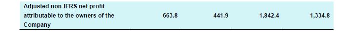 Adjusted Non-IFRS Net Profit Attributable to Owners of the Company Up 38.0% Year-Over-Year to RMB 1,842 Million