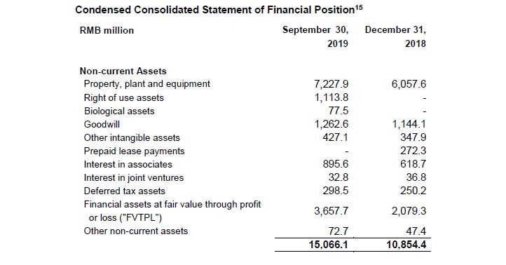 - Net profit attributable to owners of the Company was lower 8.5% year-over-year to RMB 1,765 million, due to a RMB 45 million loss from changes in fair value of our investment portfolio for the first nine months of 2019, versus a RMB 669 million gain in the same period last year.
