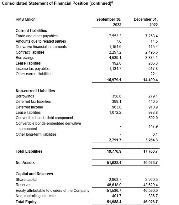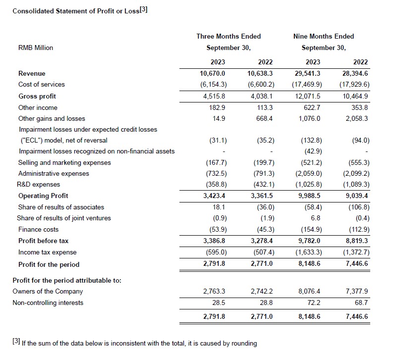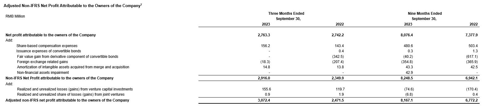 § Adjusted Non-IFRS Net Profit Attributable to Owners of the Company for the First Three Quarters Increased 20.6% to RMB8,167 Million; Adjusted Non-IFRS Diluted EPS Increased 21.0% to RMB2.77[1]