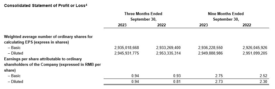 [1] In the first three quarters of 2022 and 2023, WuXi AppTec had a fully-diluted weighted average share count of 2,951,099,205 and 2,949,888,986 ordinary shares, respectively.