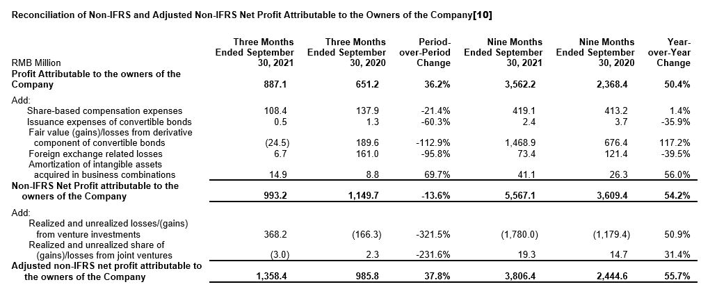 We provide non-IFRS gross profit, exclude the impact in revenue and cost from effective hedge accounting, share-based compensation expenses and amortization of intangible assets acquired in business combinations, and non-IFRS net profit attributable to owners of the Company, which exclude share-based compensation expenses, issuance expenses of convertible bonds, fair value gain or loss from derivative component of convertible bonds, foreign exchange-related gains or losses, amortization of intangible assets acquired in business combinations and goodwill impairment. We also provide adjusted non-IFRS net profit attributable to owners of the Company and earnings per share, which further exclude realized and unrealized gains or losses from our venture investments and joint ventures. Neither is required by, or presented in accordance with IFRS.