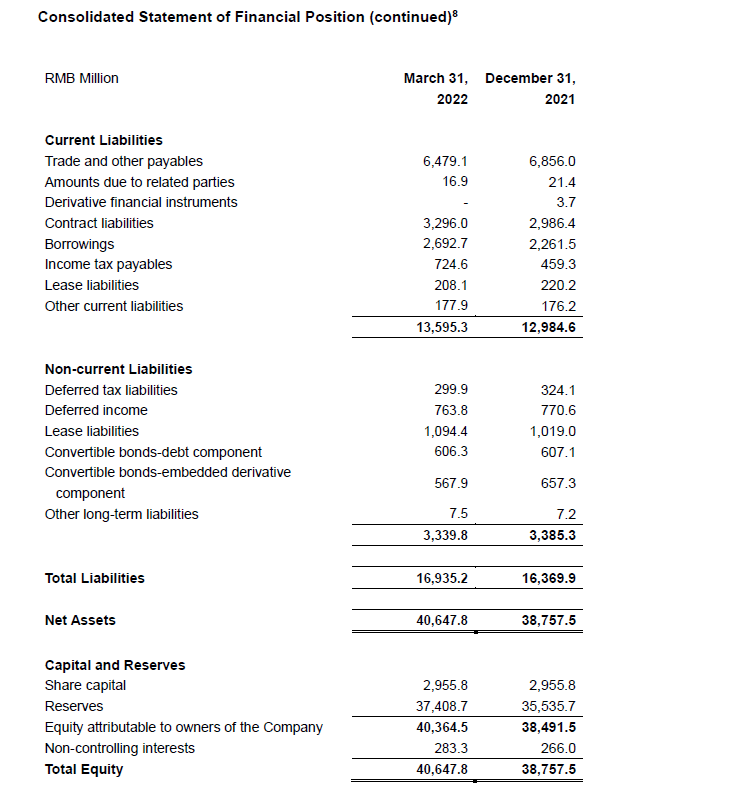 - Adjusted Non-IFRS gross profit increased 65.3% year-over-year to RMB3,202 million. Adjusted Non-IFRS gross margin was 37.8%.