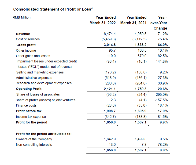 - IFRS gross profit increased 64.0% year-over-year to RMB3,015 million. Gross profit margin was 35.6%.[1]