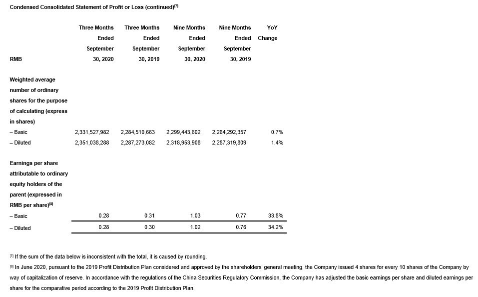 [4] The gains in the fair value of the investment portfolio of the company is RMB1,123 million in the first nine months, increased by RMB1,168 million compared with the losses in fair value of RMB 45 million in the same period last year. Nine months ended September 30, 2019 and nine months ended September 30, 2020, we had a fully-diluted weighted average share count of 2,287,319,809 and 2,318,953,908 ordinary shares, respectively.